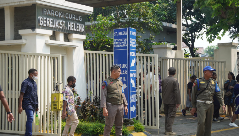 TANGERANG - Satuan Polisi Pamong Praja (Satpol PP) Kabupaten Tangerang, mengamankan Peribadatan Persatuan Oikumene Umat ...